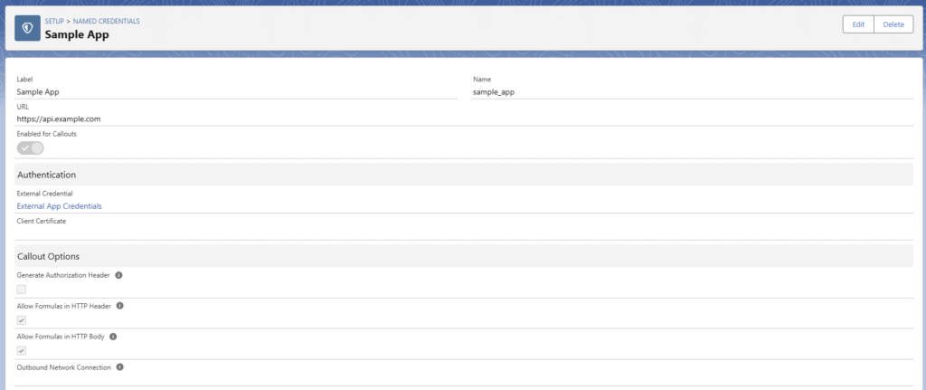 Important: Ensure the user has access to the external credential’s principal via a permission set or profile, so they are authorized to make callouts using this Named Credential.