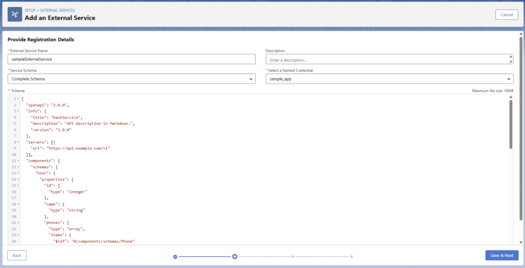 - Create a new External Service using your OpenAPI specification (Swagger schema).